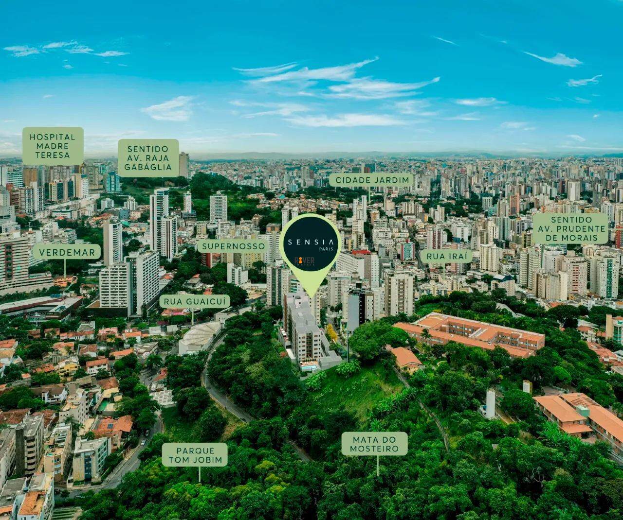 O Sensia Paris está situado no bairro Vila Paris, uma das regiões mais nobres de Belo Horizonte, próximo aos bairros Cidade Jardim, São Bento, Santa Lúcia e Santo Antônio.