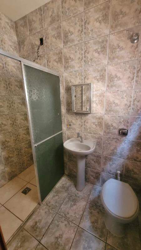 -Banheiro social completo, com armário para organização.