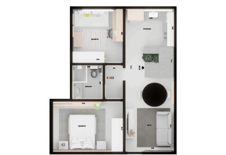 Opções de 2 quartos (sem suíte) e 3 quartos (sendo 1 suíte)